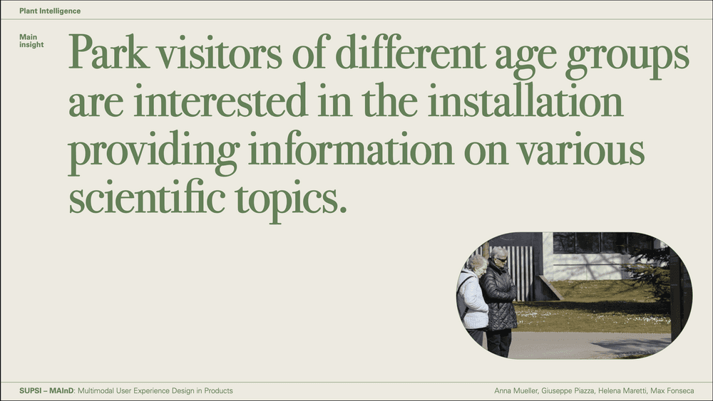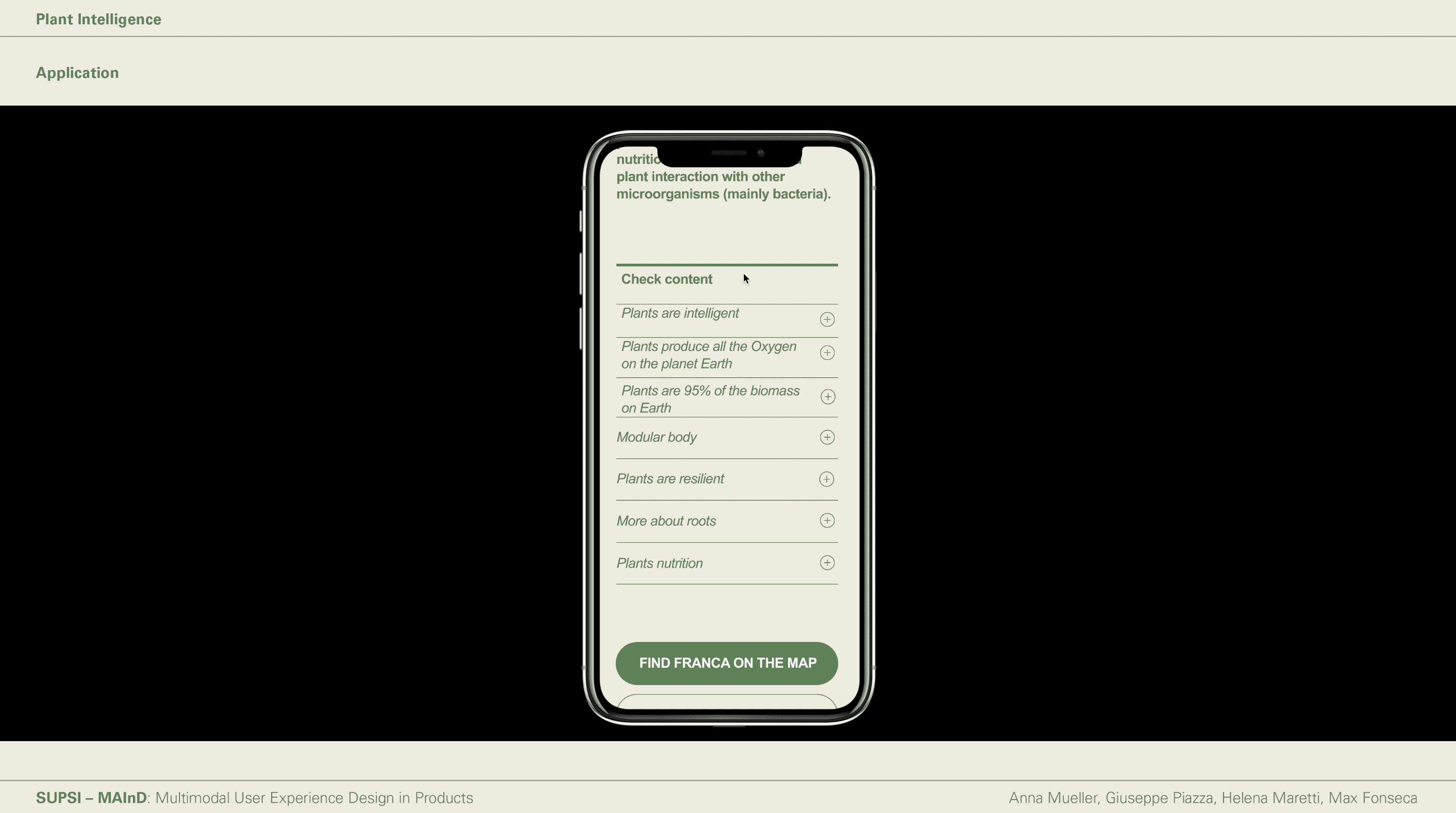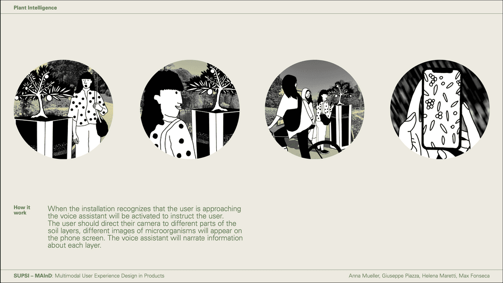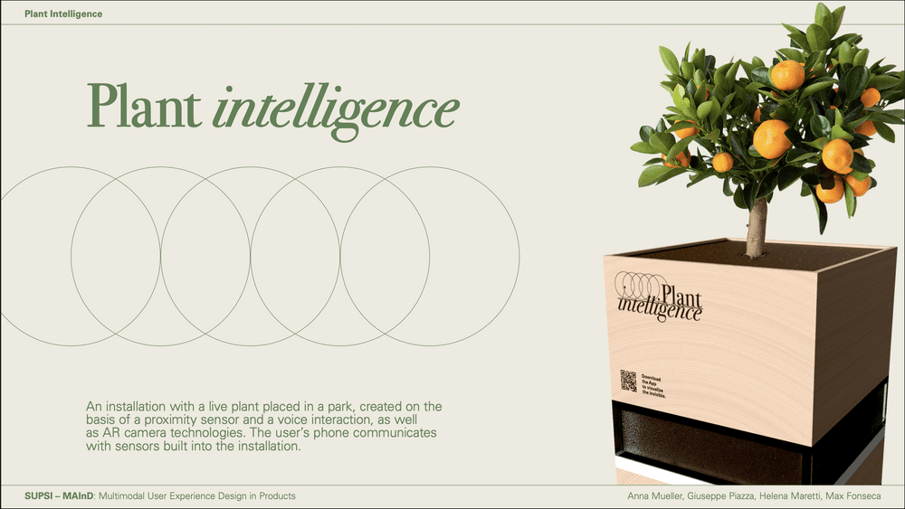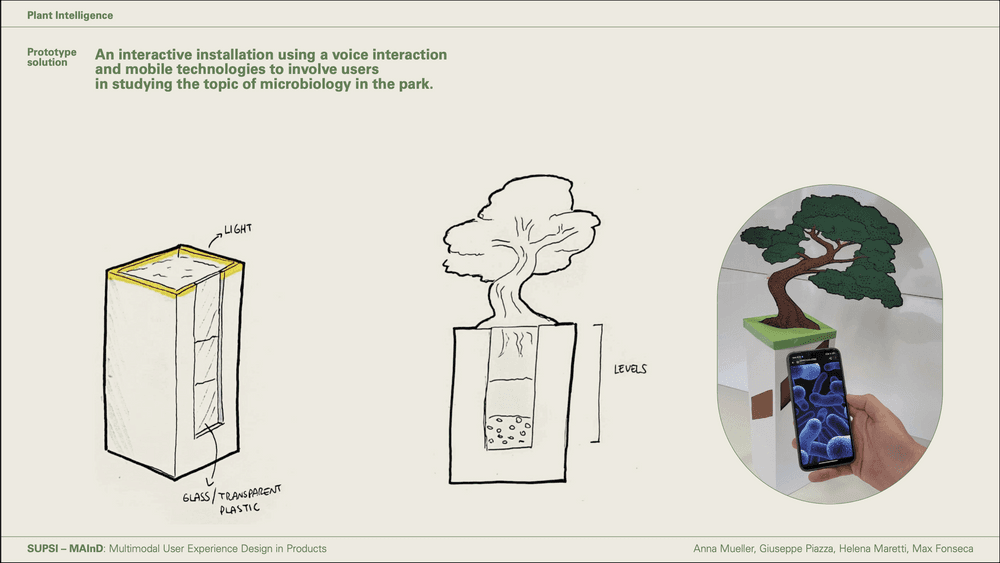 Plant Intelligence is an interactive installation situated in a public park, designed to provide accessible education on scientific topics. This prototype focuses on soil microbiology and uses a living plant as an interface to engage park visitors.