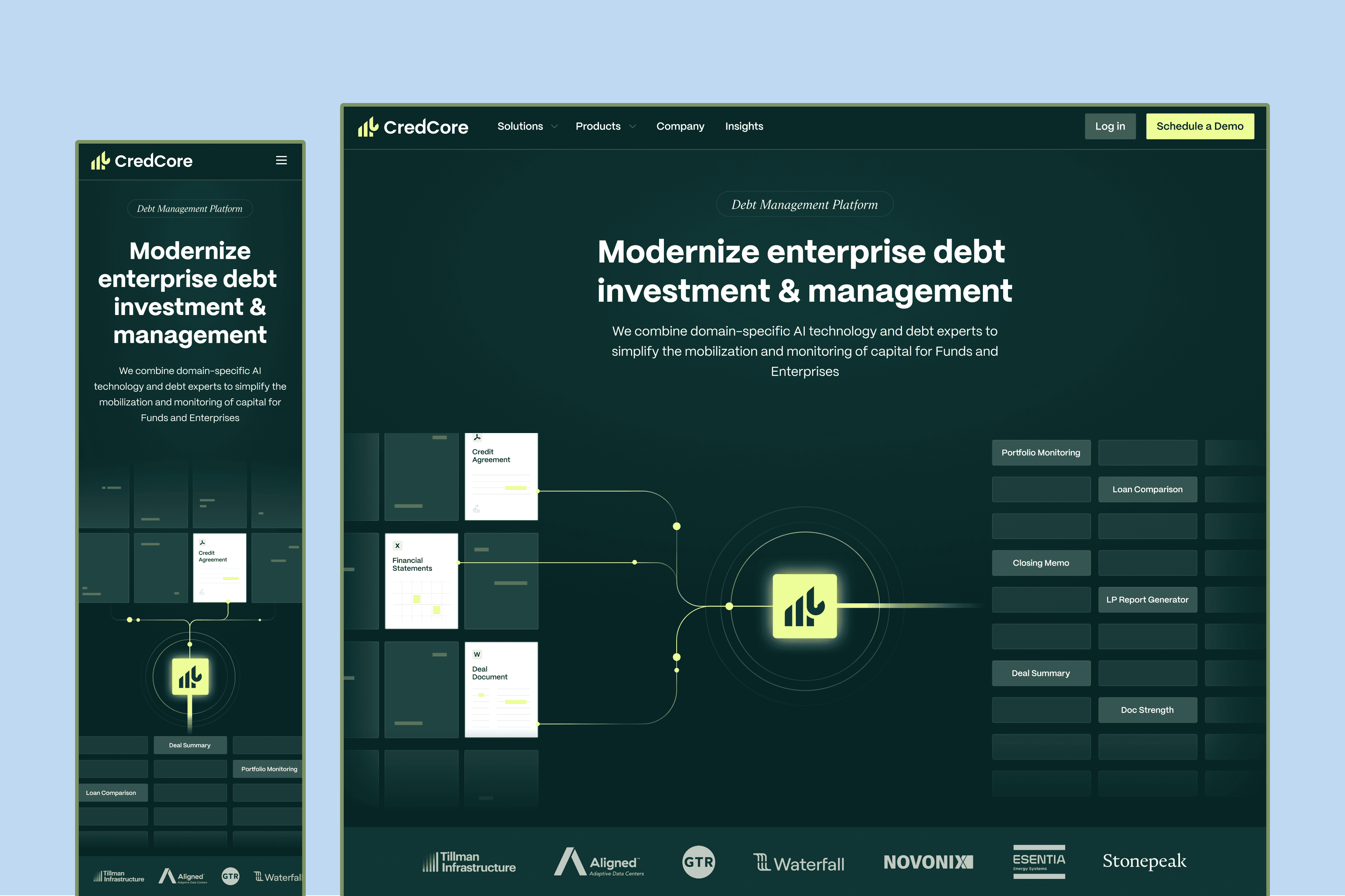 CredCore’s website lacked a clear visual hierarchy, used outdated branding, and failed to effectively communicate its value proposition. Users found it difficult to navigate, and the overall experience did not convey the company’s credibility or market positioning.